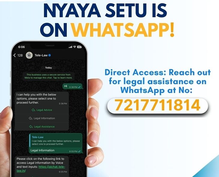 కేంద్ర ప్రభుత్వం 'న్యాయ సేతు' సేవలను వాట్సాప్లోనూ అందిస్తోంది. 7217711814 నంబర్కి HI అని మెసేజ్ చేయగానే 'Tele-Law' చాట్బాట్ లీగల్ హెల్ప్/ఇన్ఫర్మేషన్/అసిస్టెన్స్ ఆప్షన్లు చూపిస్తుంది. మీకు కావాల్సిన ఆప్షన్ ఎంచుకుని సేవలు పొందవచ్చు. ప్రజలకు లీగల్ హెల్ప్ అందించేందుకు 2024లో కేంద్రం 'న్యాయ సేతు' పేరిట డిజిటల్ ప్లాట్ఫామ్ తీసుకొచ్చింది. ఇప్పుడు దాని సేవలను వాట్సాప్కు ఎక్స్టెండ్ చేసింది.